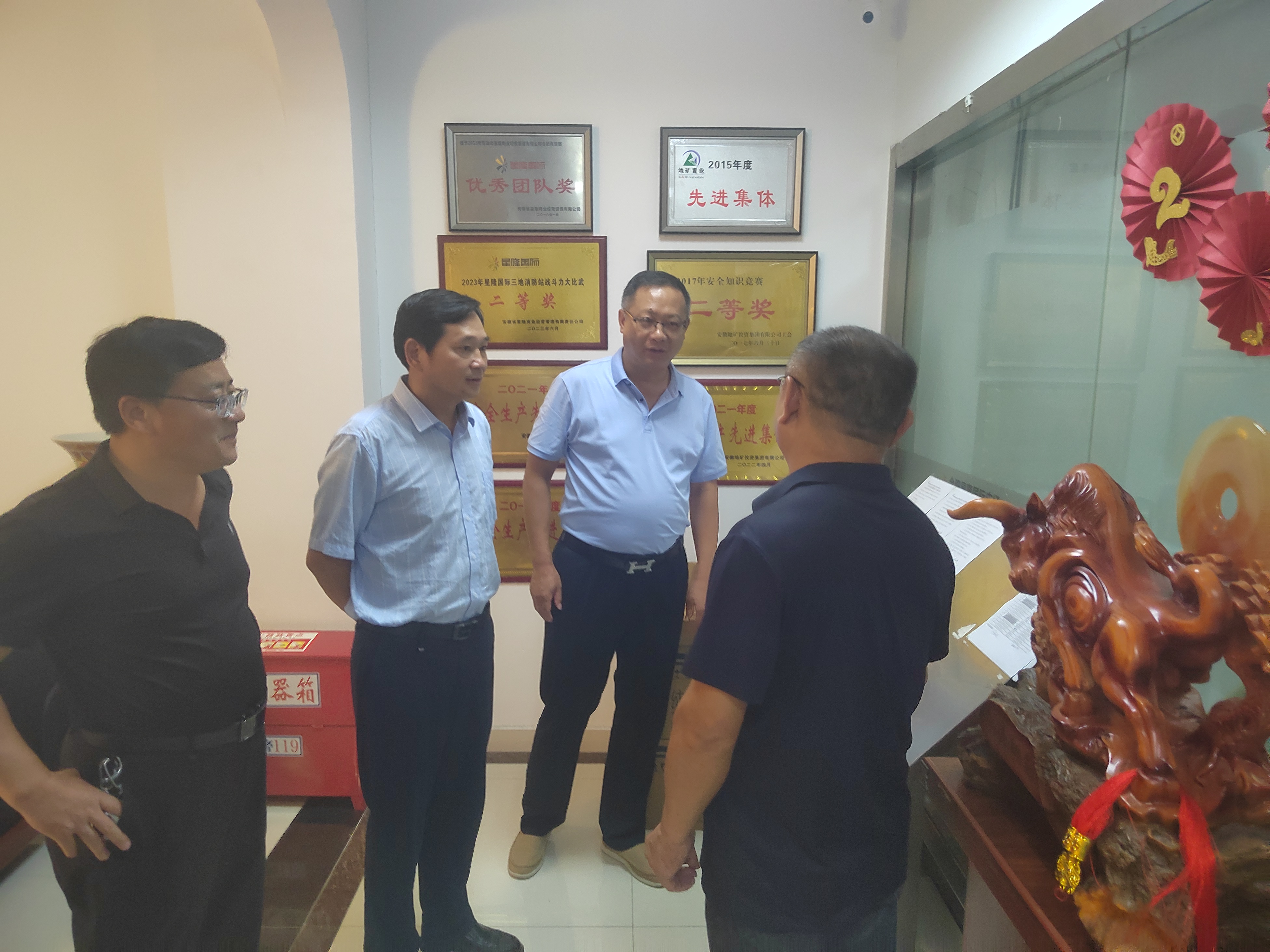 8月22日,省地矿局党委委员、副局长叶朝晖一行赴集团所属地矿置业公司合肥项目部开展“送清凉”活动,看望慰问奋战在一线的职工。